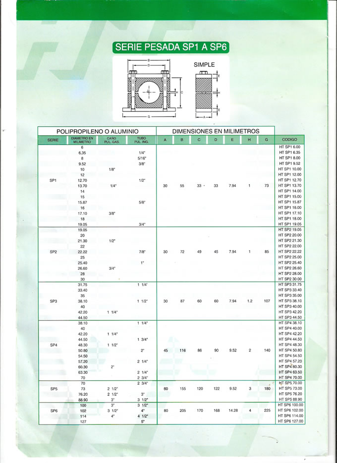 Soportes para mangueras y tuberías, serie pesada SP1 a SP6.